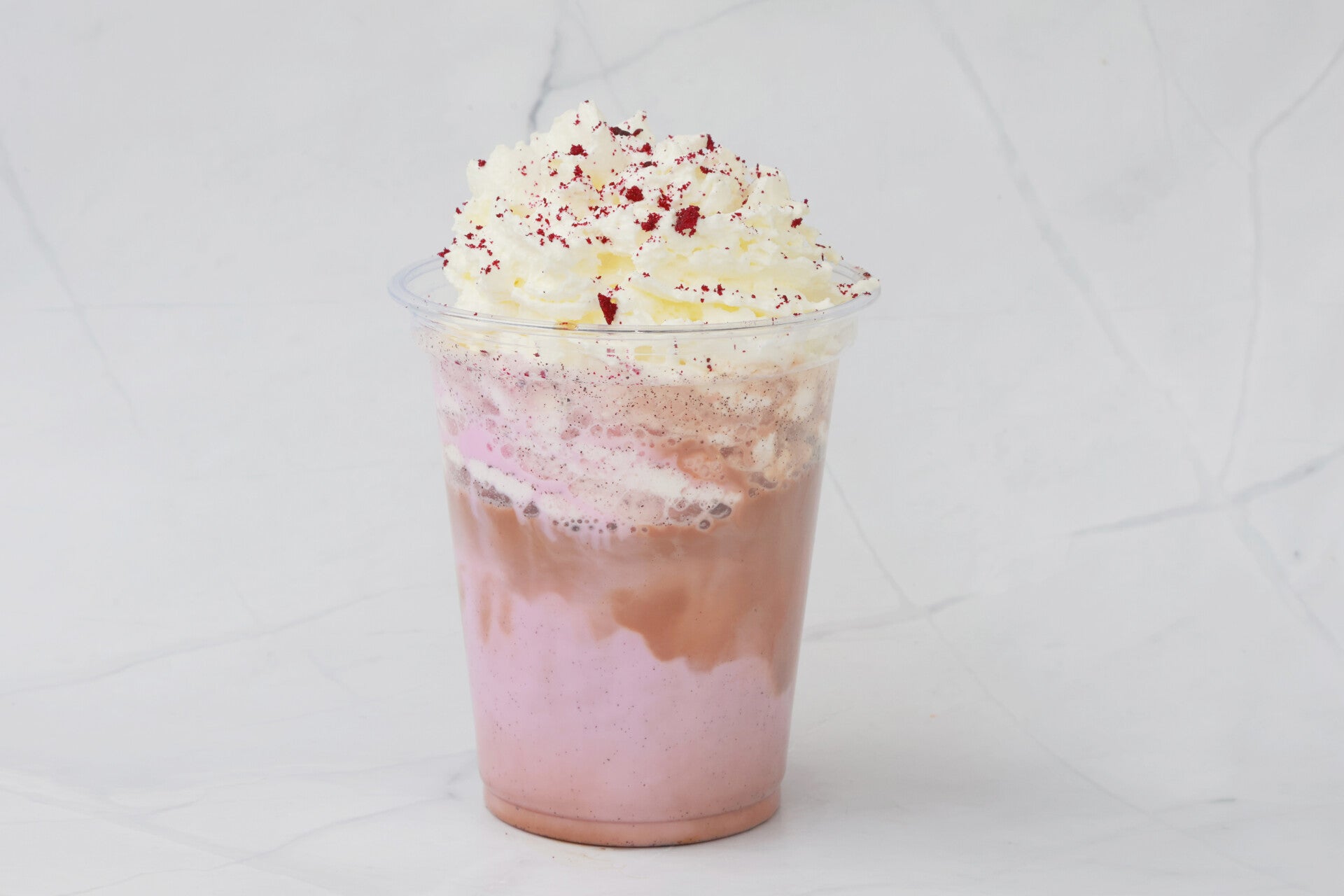 🐉 Dragon Fruit Latte – romig, fris en verleidelijk roze, met tropische tonen.